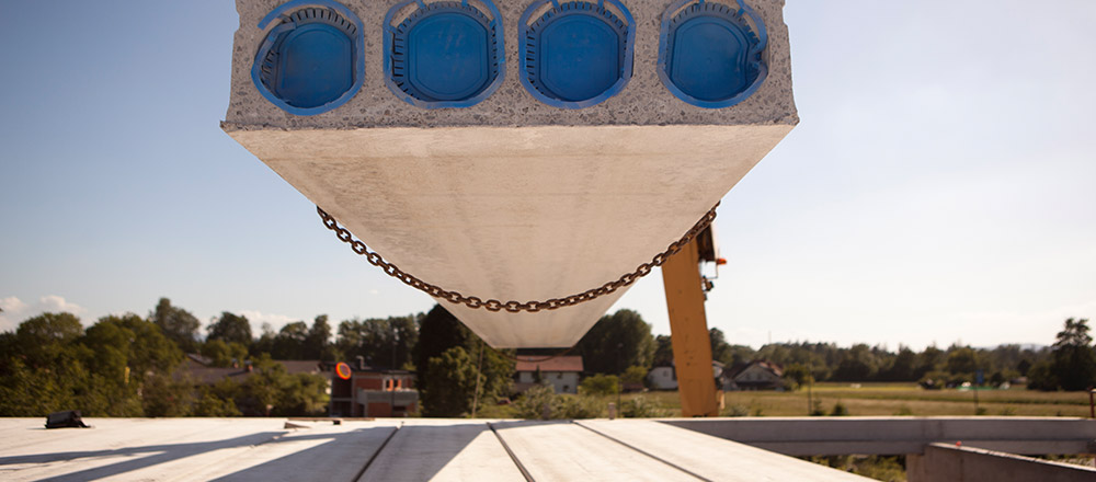 Za proizvodnjo plošč je bila od finskega proizvajalca ELEMATIC nabavljena tehnologija, ki obsega tri proizvodnje linije dolžine 108 m s pripadajočo opremo za prednapenjanje in betoniranje. Na predhodno napete visokovredne jeklene vrvi se na kovinskih podnicah z ekstrudorjem vgradi celoten prerez betona, ki se ga po doseženi zadostni trdnosti s specialno žago razreže na želene (projektirane) dolžine in oblike.